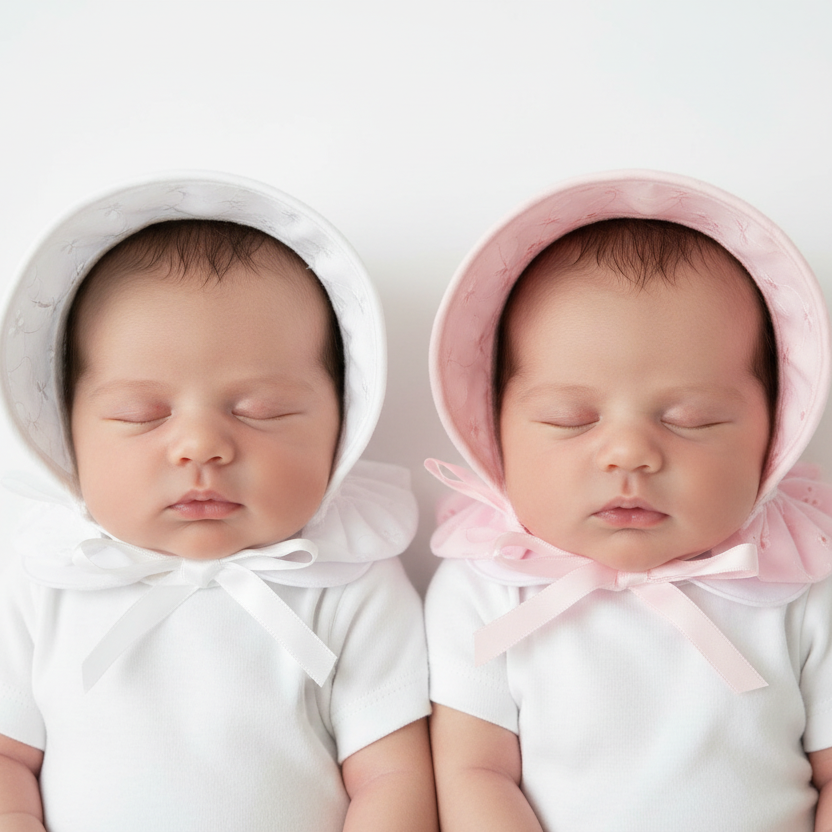 Style Note: This traditional broderie anglaise peak bonnet embodies classic British baby fashion. The delicate eyelet embroidery, peaked design, and ribbon chin tie create a vintage-inspired look that's both practical and precious. Available in white and pink to coordinate beautifully with your little one's summer wardrobe.