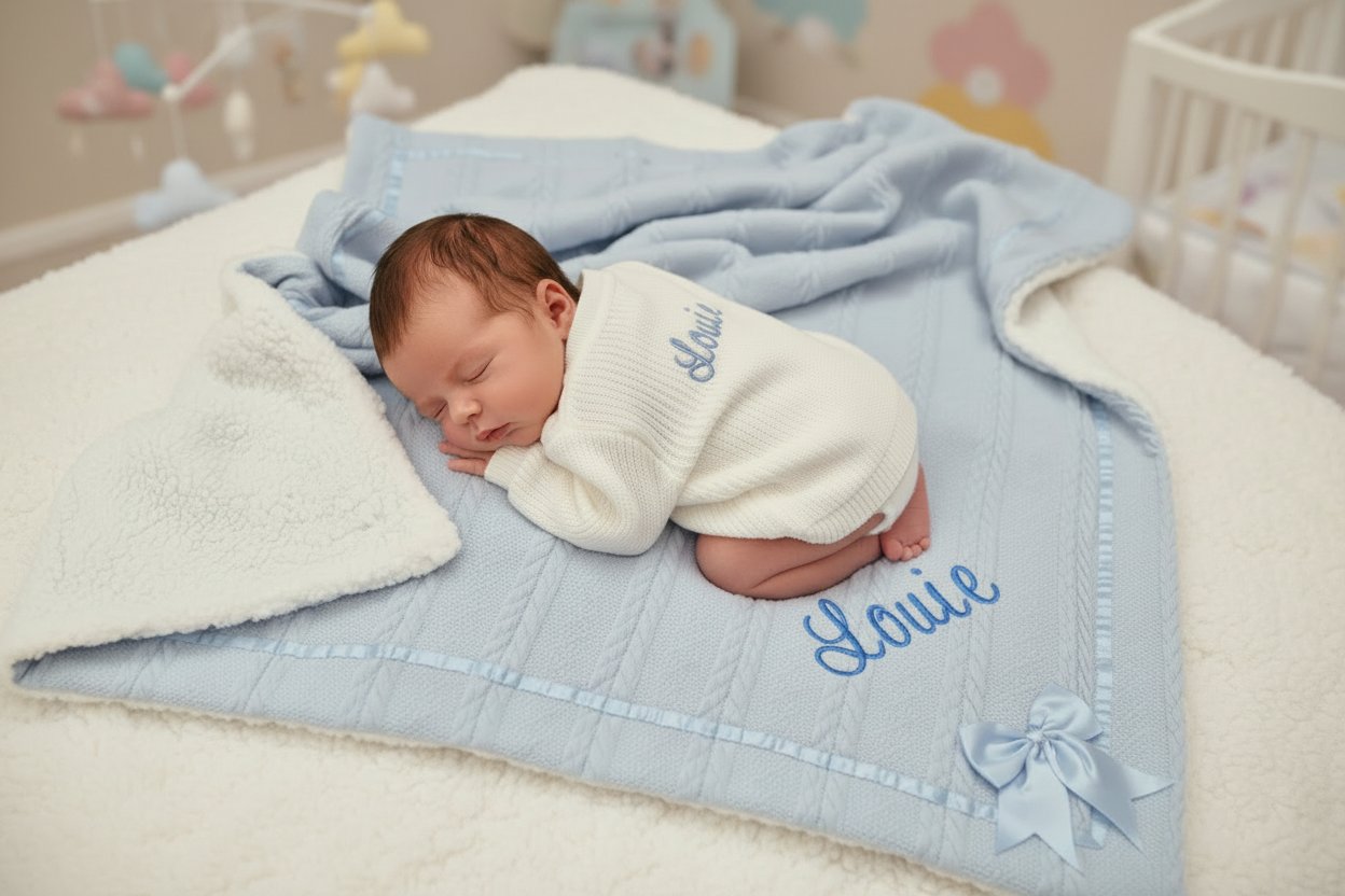 Personalised Blanket & Cardigan Set, Blue & Pink Available