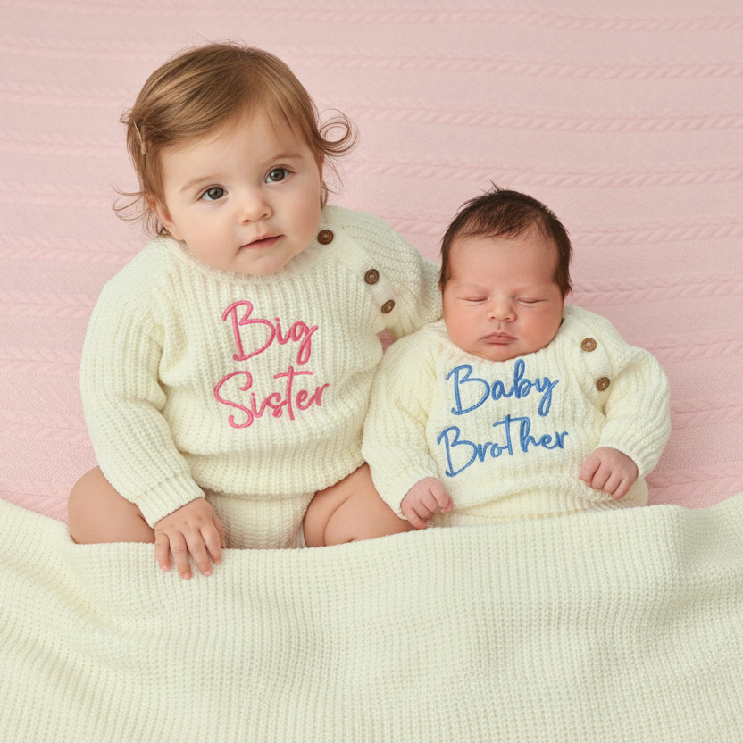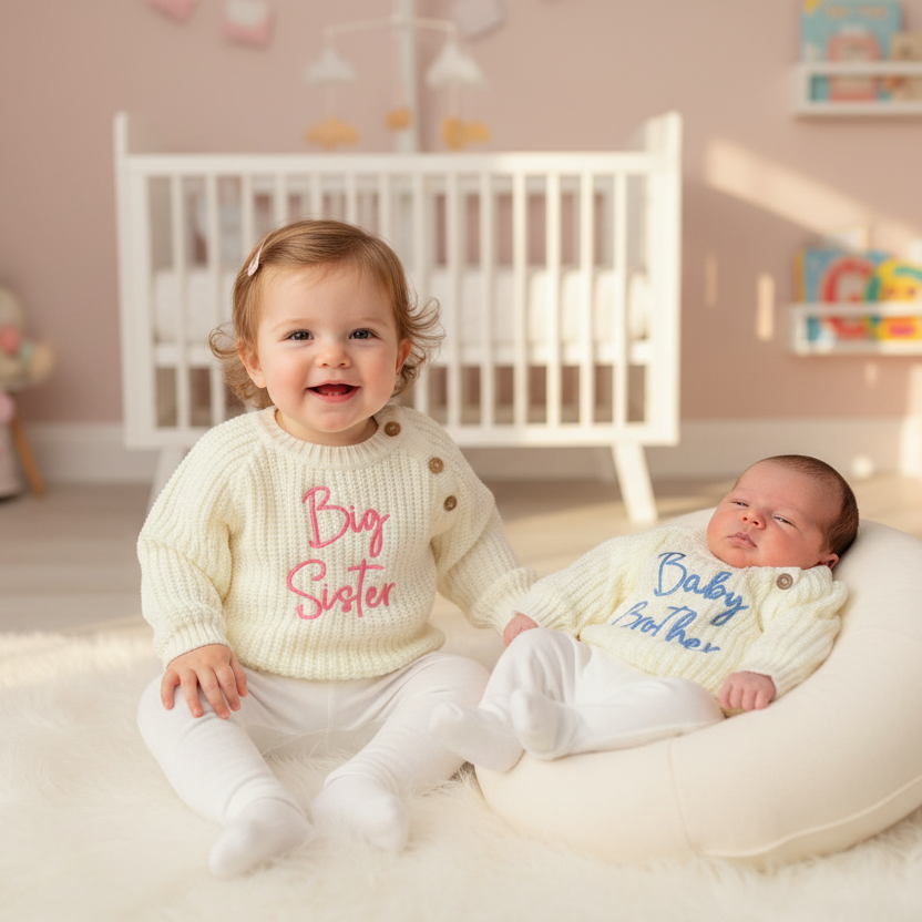 Wrap your little one in warmth and personality with our Personalised Chunky Knit Jumper by Dandelion Baby. Crafted in a beautifully soft, chunky knit fabric, this cosy jumper is the perfect heirloom-quality keepsake — made even more special with a personalised name or phrase.