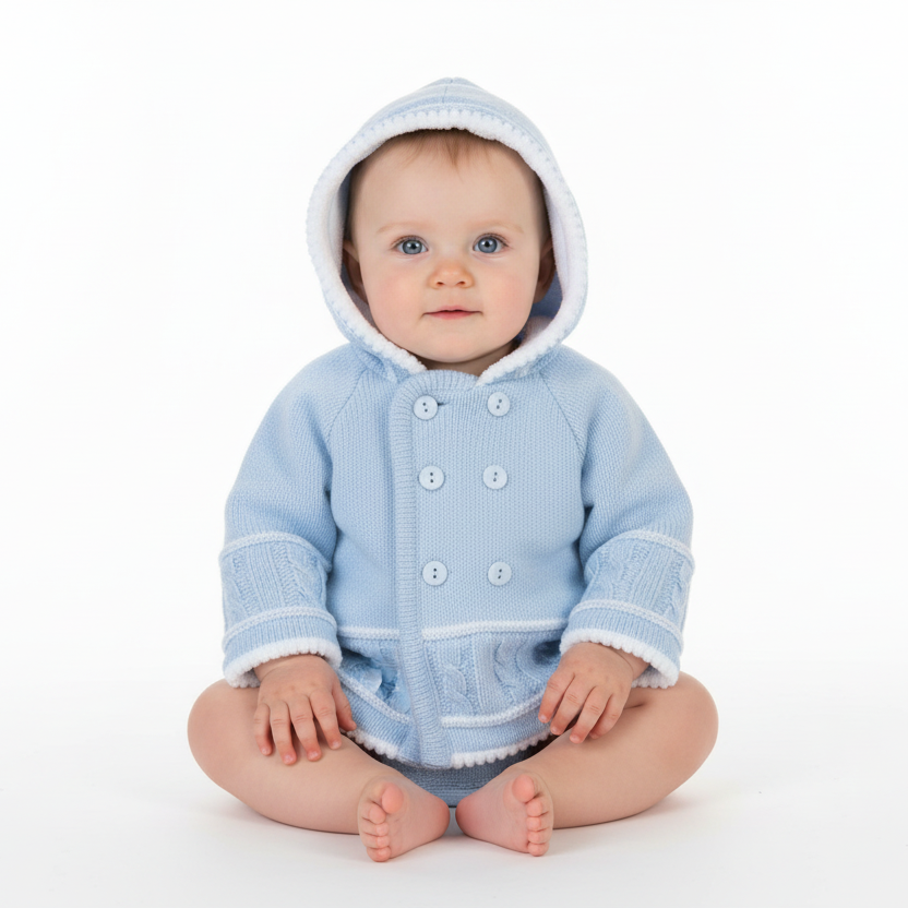 Blue Knitted Baby Jacket Cardigan Dandelion PramCoat