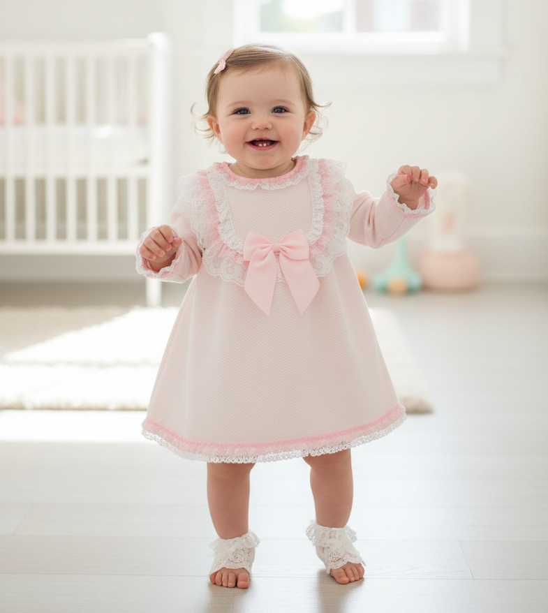 Girls Pink Ribbon Waffle Dress