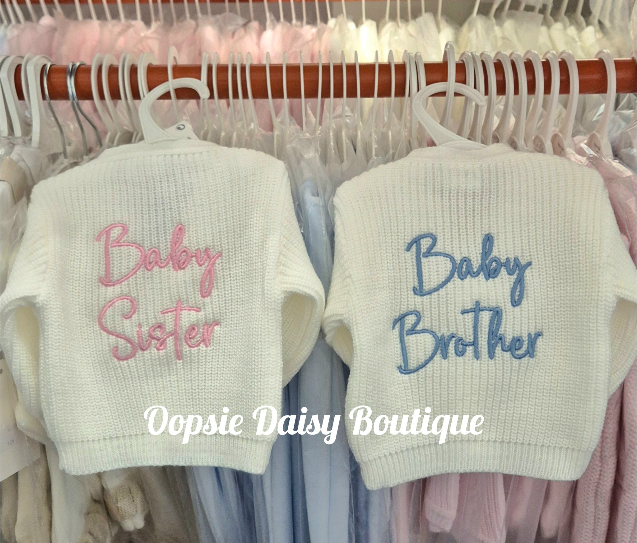 We can add a fancy new font on these, pls add a note in the name box if you would like the new font, example of new writing is on the cardigans on 2nd picture